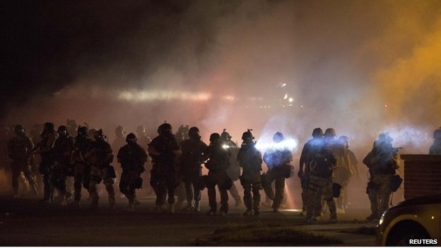 Rất nhiều cảnh sát chống bạo động vũ trang đã tới giải tán người biểu tình sau khi họ phớt lờ lời kêu gọi trở về nhà hồi tháng 8.