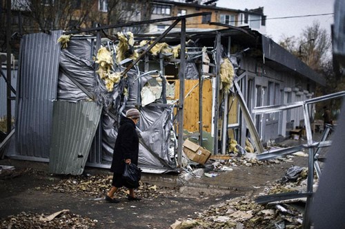 Một cửa hàng bị tàn phá sau một cuộc pháo kích ở Kuybeshevski, tỉnh Donetsk.