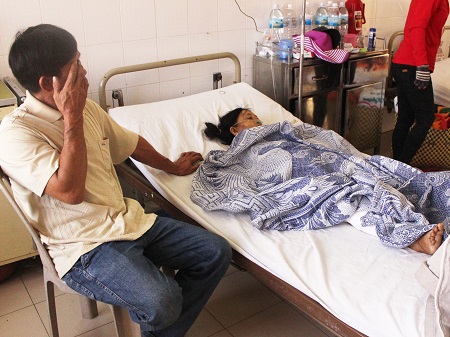 Bà Cảnh đang được cấp cứu tại Bệnh viện tỉnh Khánh Hòa sau khị bị heo rừng tấn công.