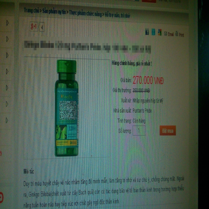 Không chỉ trong các hiệu thuốc, trên các trang mạng Xã hội, thuốc tăng cường trí nhớ cũng được rao bán công khai với những lời quảng cáo có cánh như: "Duy trì máu huyết chảy về não nhằm tăng độ minh mẫn, làm tăng trí nhớ và sự chú ý, chống chóng mặt, bảo vệ tế bào thần kinh trong trường hợp thiểu năng tuần hoàn não hay tiếp xúc với chất gây ngộ độc thần kinh". Những lời quảng cáo này được viết ra cho sản phẩm Ginkgo Biloba hộp 100 viên (chiết xuất từ cây bạch quả) xuất xứ từ Mỹ với giá khuyến mãi 270.000 đồng (giá gốc 350.000 đồng).