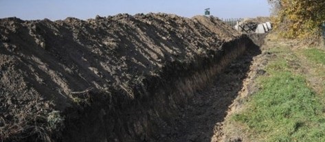 Bức tường biên giới chạy dọc với phần lãnh thổ Nga đang được phía Ukraine khẩn trương xây dựng.