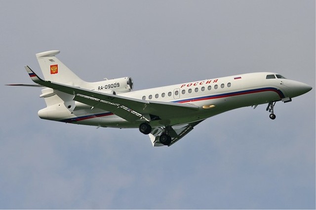 Bên cạnh Airbus ACJ319, Business Insider còn khẳng định Dassault Falcon 7X là phi cơ ngoại thứ hai nằm trong đội bay phục vụ tổng thống Nga. Nó là mẫu máy bay tầm xa, độ cao lớn, với 19 ghế ngồi do công ty chế tạo máy bay Dassault của Pháp sản xuất. Theo trang web của công ty, Dassault Falcon 7X là mẫu phi cơ dân sự có thể đạt tới vận tốc tối đa 953 km/h cùng trần bay 15.500 m. Ảnh minh họa: Dassault