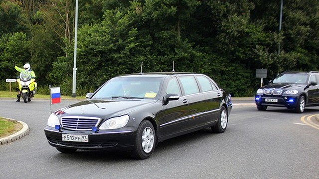 Ngoài máy bay, ông Putin còn sử dụng những chiếc Mercedes Benz S600 Pullman Presidential (W220) cải tiến để đi lại bằng đường bộ. Chúng có khả năng chống các loại đạn thông thường, đạn xuyên giáp hay mảnh đạn từ một vụ nổ. Nội thất chiếc xe cũng vô cùng sang trọng để phù hợp với nhiệm vụ chuyên chở người đàn ông quyền lực nhất thế giới theo bình chọn của Forbes. Ảnh: Itar-tass