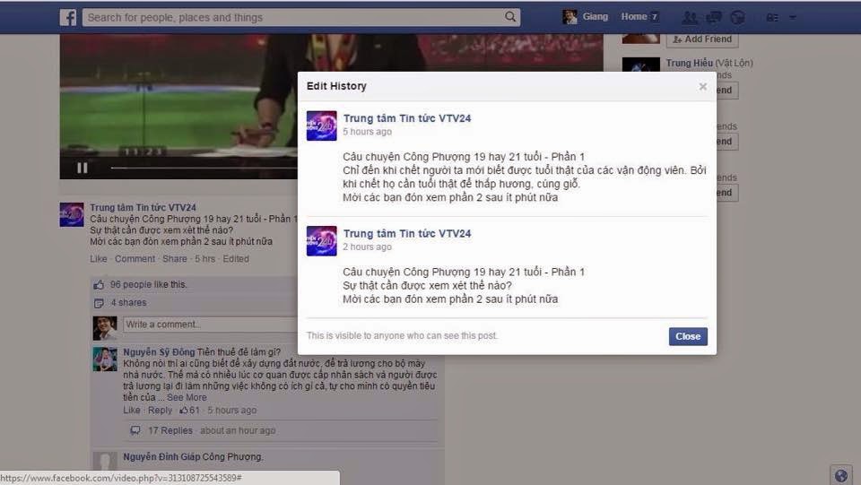 Nguyên văn nội dung được đăng tải trên Fanpage Trung tâm tin tức VTV 24: “Chỉ đến khi chết người ta mới biết được tuổi thật của các vận động viên. Bở khi chết họ cần tên tuổi thật để thắp hương, cúng giỗ. Mời các bạn đón xem phần 2 sau ít phút”.