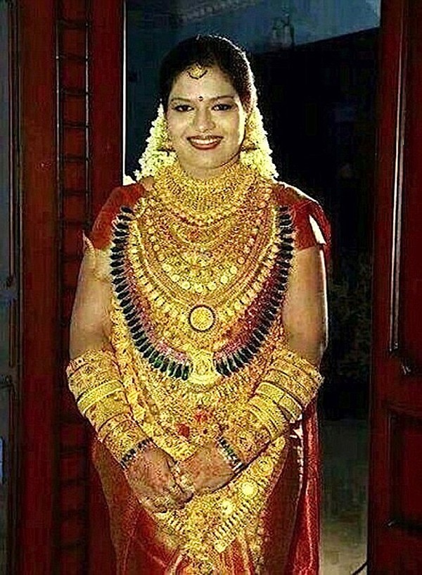 Hình ảnh cô dâu đeo đầy vàng trên người.