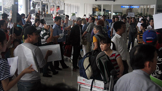 Lúc này nhiều hành khách, trong đó có những du khách người nước ngoài, phản ứng gay gắt, yêu cầu máy bay cất cánh nếu không sẽ hủy vé, đổi vé... Đáp lại, nhân viên chuyến bay chỉ nói do sự cố kỹ thuật rồi mở cửa mời hành khách trở lại nhà ga tiếp tục chờ đợi.