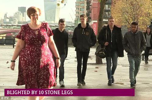 Người phụ nữ có đôi chân nặng tới 63kg là cô Claire Tickle (38 tuổi) sống tại một thành phố thuộc nước Anh. Năm 16 tuổi, Claire cảm thấy xung quanh bàn chân như có một lớp đàn hồi. Lo lắng đến sức khỏe, Claire đã đến bệnh viện thăm khám. Tại đây, các bác sĩ chẩn đoán nguyên nhân là do cô quá béo và khuyên nên giảm cân.