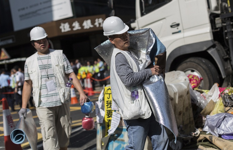 Chính quyền Hồng Kông bắt đầu vào thứ ba thanh toán bù trừ các chướng ngại vật ở Mong Kok, trên một phần phía tây của bán đảo Cửu Long, một trong những địa điểm biểu tình chính, báo cáo truyền hình địa phương đã cho biết. Hơn 20 chấp hành viên tham gia của cảnh sát đã bắt đầu tháo dỡ rào chắn bằng gỗ và kim loại trong một hoạt động, trong đó đã được lệnh của Tòa án tối cao của Hồng Kông. Các nỗ lực dự kiến ​​sẽ kéo dài trong khoảng hai ngày.
