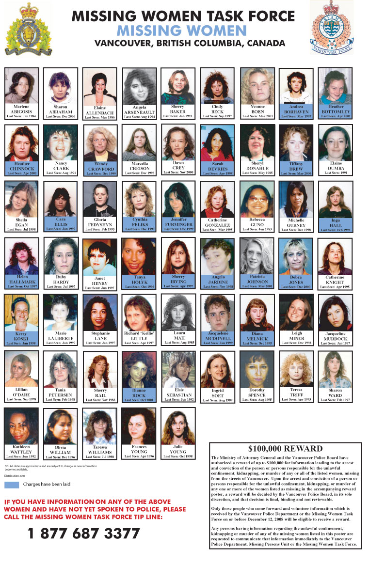 Gia đình các nạn nhân đã tố cáo cảnh sát Vancouver “bỏ qua bằng chứng” buộc tội một kẻ giết người hàng loạt, giúp hắn nhởn nhơ ngoài vòng pháp luật, chỉ bởi vì “đa số nạn nhân là gái mại dâm và con nghiện ma tuý.”