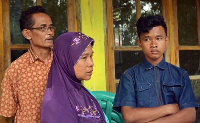 Cha, mẹ và em trai của cô Sumarti Ningsih. Ảnh: BBC