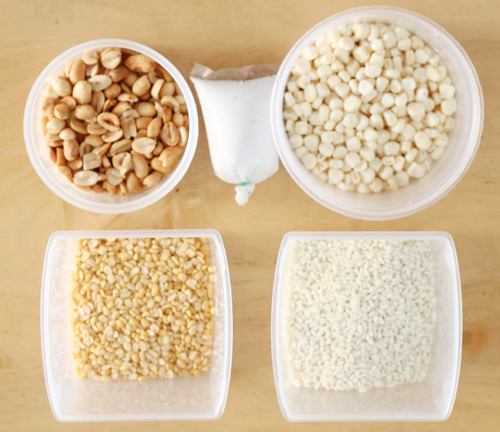 Bước 8: Giã nhỏ đậu phộng/ lạc rang và trộn với 5g muối, 40g đường để làm muối mè.