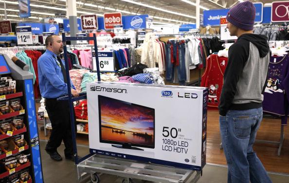 nhân viên A Walmart giúp một khách hàng với một 'TV 50 trên bán cho $ 218 Black Friday tại Broomfield, Colorado 28 Tháng Mười Một 2014.