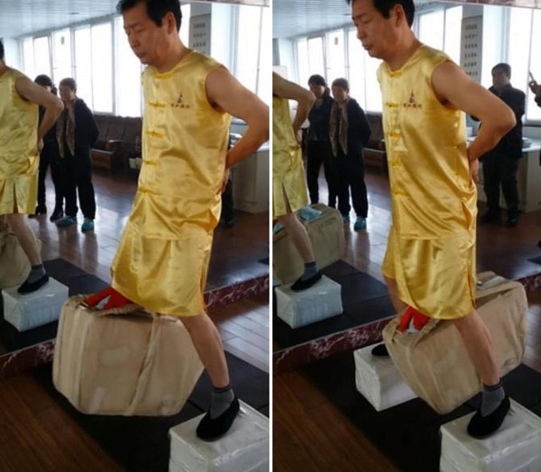 Khác với những võ sư khác, ông Zhao Zhenhua, võ sư sống tại tỉnh Hà Nam, Trung Quốc lại chọn bài tập treo gạch vào tinh hoàn để rèn luyện sức khỏe.