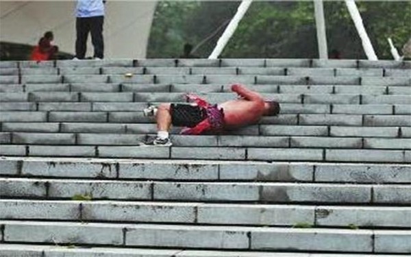 Không chọn những bài tập nhẹ nhàng để rèn luyện sức khỏe, ông Li, 51 tuổi lại thích mát-xa cho cơ thể bằng cách nằm lăn từng bậc thang xuống đất vào mỗi buổi sáng. Ông thường tới Công viên Tây An, tỉnh Thiểm Tây, Trung Quốc để luyện tập cũng như giải tỏa căng thẳng mỗi ngày.