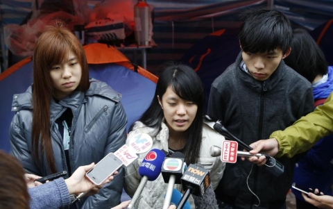 Theo AFP, thủ lĩnh biểu tình sinh viên Joshua Wong và hai người bạn của mình, những người vẫn đang tiến hành tuyệt thực từ ngày 1/12, đã đọc một bức tâm thư gửi lãnh đạo Hong Kong Lương Chấn Anh ngay tại khu lều trại của mình.