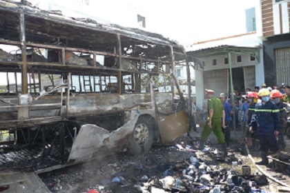 Chiếc xe khách giường nằm sau khi vừa trả khách và hàng hóa xong rồi đỗ tại lô đất trống sát đường quốc lộ bỗng dưng bốc cháy dữ dội. Khi lực lượng chức năng tiếp cận dập lửa thì chiếc xe đã bị thiêu rụi.