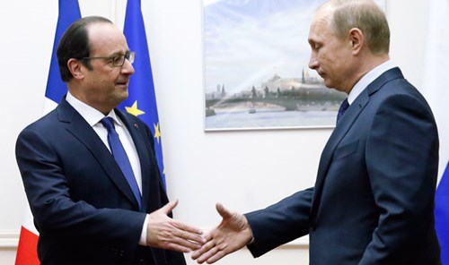 Tổng thống Pháp Francois Hollande và Tổng thống Nga Vladimir Putin.