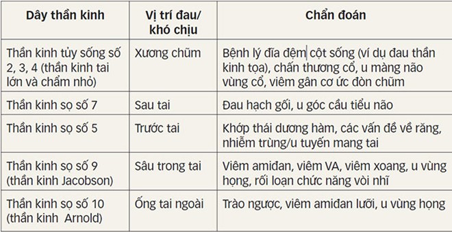 Lý do chính là vì cảm giác đau được chuyển đến tai bởi một số dây thần kinh đi vào tai từ những vùng có bệnh lý ở đầu cổ. Có cả một danh sách các dây thần kinh và những bệnh lý thường gặp nhất gây đau/khó chịu ở tai (xem box).