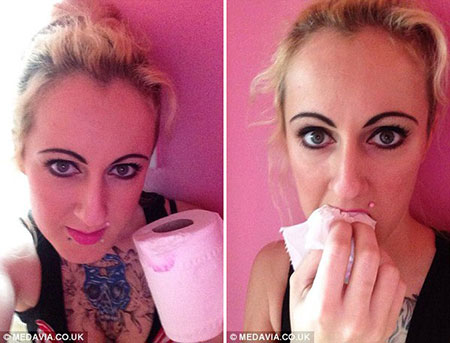 Người phụ nữ 25 tuổi sống tại thị trấn Gainsborough, hạt Lincolnshire cho biết triệu chứng thèm ăn giấy toilet bắt đầu khi cô mang thai cậu con trai út - bé Jaxon ở tháng thứ hai. Dần dần, thói quen ăn uống kỳ lạ này đã phát triển thành cơn nghiện tới nỗi mỗi ngày Jade có thể ăn hết tới 1 cuộn giấy toilet. Mỗi lần thấy thèm, cô lại bí mật đi vào toilet xé vài đoạn giấy toilet mềm mại, cho vào miệng nhai rồi nuốt chửng.