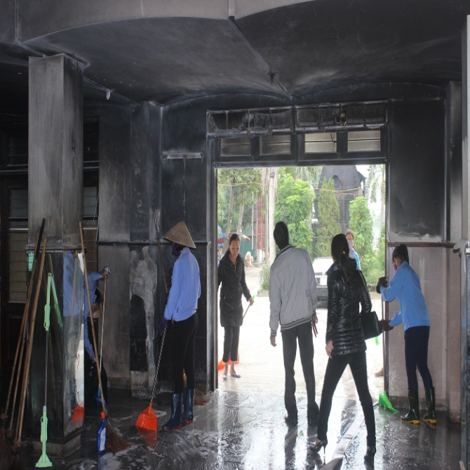 "ăn sáng xong, Hòa dắt xe đi lúc nào tôi cũng không biết. Một lúc sau thấy nó về nhưng mặt mày tái xanh, run lẩy bẩy, hỏi chuyện thì nó bảo vừa đốt lửa ngoài ga. Tôi cứ nghĩ nó nói chơi, ai ngờ lại là thật. Rất may không có ai bị thương cả. Nó gây ra họa thiệt hại nhiều tiền vậy, chúng tôi cũng không biết lấy đâu mà đền", bà Quý nước mắt ngắn dài nói.