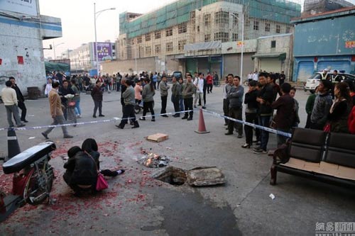 Một người phụ nữ tên Zhang, chủ của cửa hàng bách hóa gần đó nói với các phóng viên rằng các công nhân môi trường đã mở hố ga vào buổi sáng. Họ nói rằng công trình này sẽ được thực hiện vào buổi chiều tuy nhiên không có rào chắn hay bất cứ biển cảnh báo nào cho người đi bộ tại khu vực hố ga chưa được đậy nắp.