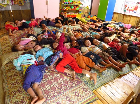 Giờ ngủ trưa của các bé Trường mầm non Phình Sáng.