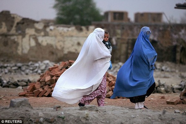Ở Afghanistan, phụ nữ buộc phải thực hiện nghiêm ngặt việc ăn mặc kín đáo khi ra đường. Họ phải trùm chiếc khăn trên đầu và chiếc áo phải dài để có thể che kín chân. Những năm 1960-1970 họ được mặc váy ngắn nhưng gương mặt thì vẫn phải được che bằng một lớp vải mỏng. Tuy nhiên, dưới thời Taliban thì đây được xem là điều cấm kị tuyệt đối. Tất cả các cô gái khi ra đường đều phải che kín mít từ đầu tới chân.