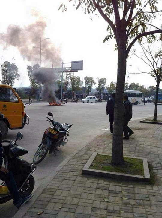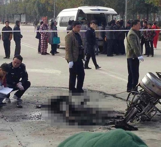 Vụ việc xảy ra trên con đường chính chạy qua quận Vũ Ninh, Giang Tây – miền Nam Trung Quốc. Shaiming Liang, 33 tuổi, đang lái mô tô chạy trên đường bỗng dây cáp điện cao thế rơi trúng, quấn quanh cổ và phát cháy. Lửa lập tức bắt lên người Shaiming Liang và ngay sau đó chiếc xe phát nổ, thiêu rụi nạn nhân này.