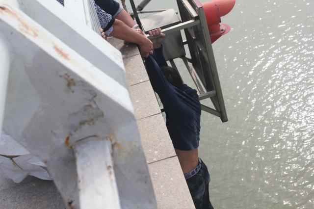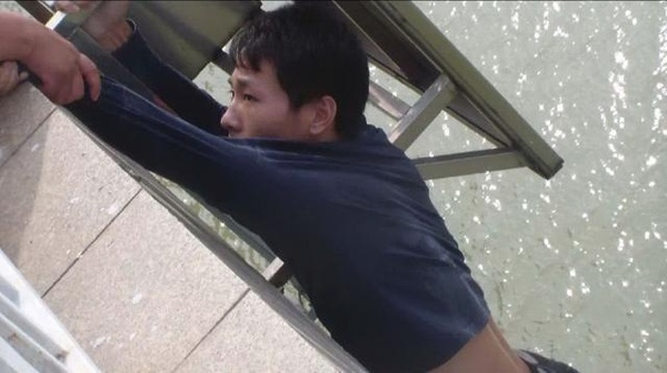 Trong thời gian này, cơ thể người thanh niên bị treo lơ lửng bên ngoài thành cầu. Khi lực lượng cứu hộ xuất hiện, anh đã được giải cứu an toàn.