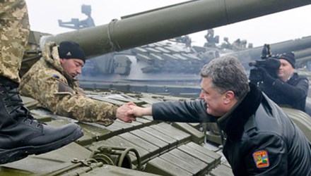 Tổng thống Ukraine Poroshenko trong một chuyến thị sát tới vùng chiến sự miền Đông