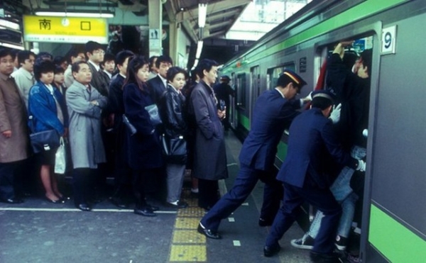 Tại những thành phố đông đúc và bận rộn của Nhật Bản, trong giờ cao điểm như buổi sáng, các tàu điện ngầm đều chật kín. Vì vậy, nghề đẩy khách lên tàu ra đời. Những người này có nhiệm vụ nhồi ngày càng nhiều người lên tàu càng tốt, bằng cách đứng ngoài đẩy họ trước khi tàu chạy. Họ cũng có nhiệm vụ kéo những hành khách đang cố lên chiếc tàu đã quá đông. Hãy thấy rằng mình may mắn khi không sống ở Nhật Bản, nơi mà những người đẩy chuyên nghiệp được thuê để dồn nhiều người nhất có thể lên tàu vào giờ cao điểm.