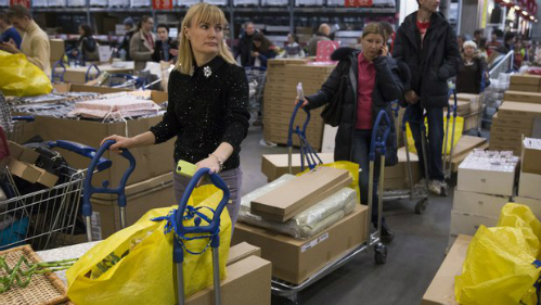 Công nhân và du học sinh Trung Quốc ở Nga hối hả mua thật nhiều thứ hàng hóa bỗng dưng rẻ đi do đồng rúp Nga hạ giá. Nhiều loại hàng hiệu giờ đang xuống đến mức người lao động bình thường có thể mua được.