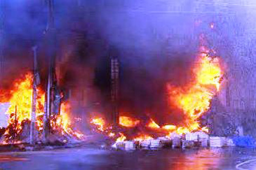 Khói đen và lửa bốc cao nghi ngút bao trùm khu vực.