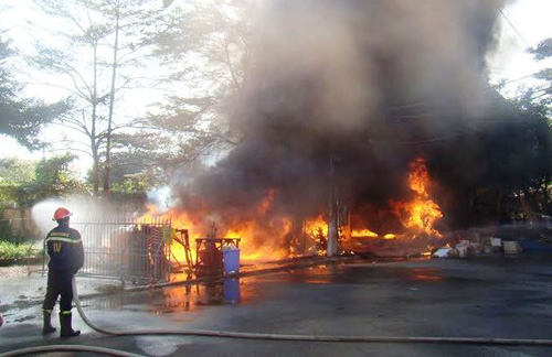 Do kho phế liệu chứa đầy vải, cao su, gỗ...nên đám cháy hoành hành dữ dội...
