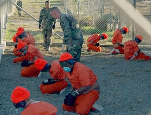 Các nghi phạm khủng bố bị giam giữ tại nhà tù Goan-ta-na-mô của Mỹ. Ảnh Wikipedia