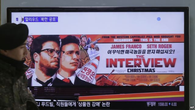 Áp phích quảng cáo phim 'The Interview' của hãng Sony tại nhà ga xe lửa Seoul.