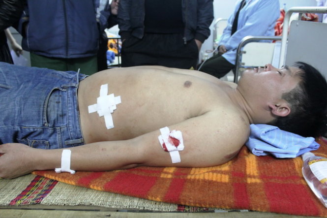 Anh Nguyễn Văn Thành bị trúng 3 viên đạn đang được cấp cứu tại bệnh viện - Ảnh: Doãn Hoà