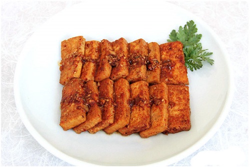 Sau đó, bạn đổ hỗn hợp này vào chảo đậu phụ vừa chiên vàng.