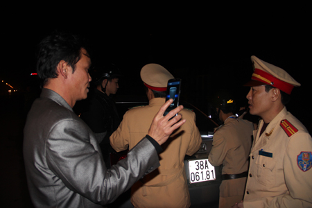 Sự việc xảy ra vào lúc 23h đêm 24/12, tại địa bàn xã Thạch Bình, TP Hà Tĩnh. Lúc PV có mặt, người đàn ông này đang trong tình trạng say khướt, người nồng nặc mùi rượu, miệng liên tục chửi bới, thách thức các chiến sĩ CSGT và một số người dân đứng gần hiện trường.