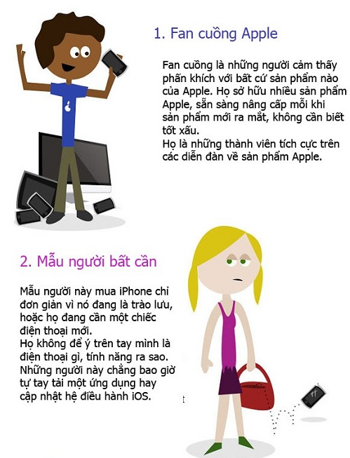 Bên cạnh những tín đồ iPhone, còn có những kiểu người mua chúng với lí do đơn giản: chạy theo thời thượng. Nhưng cũng có một nhóm người mua chúng với những chức năng phù hợp với công việc của họ.
