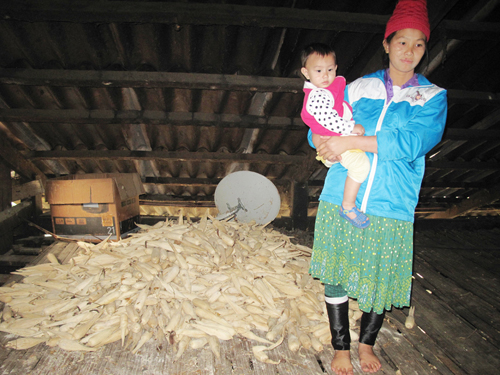 Anh Giàng Á Me cũng là một lao động đang ở Arab Saudi. Vợ của Me là Vừ Thị Xía rơm rớm nước mắt khi biết chúng tôi muốn hỏi về chồng mình. Chị không nói được tiếng phổ thông, chỉ im lặng bế con. Nhìn quanh trong nhà chị chỉ thấy có một cái giường, một đống lửa giữa nhà. Hỏi chị lúa ngô để đâu, chị lắc đầu. Ông trưởng thôn nói hộ: “Có đâu mà để, hai mẹ con nhà này phải sống nhờ ông bà ngoại”.