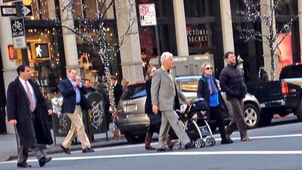 Ông bà Clinton dạo phố cùng cháu ngoại - Ảnh: Michelle Leifer