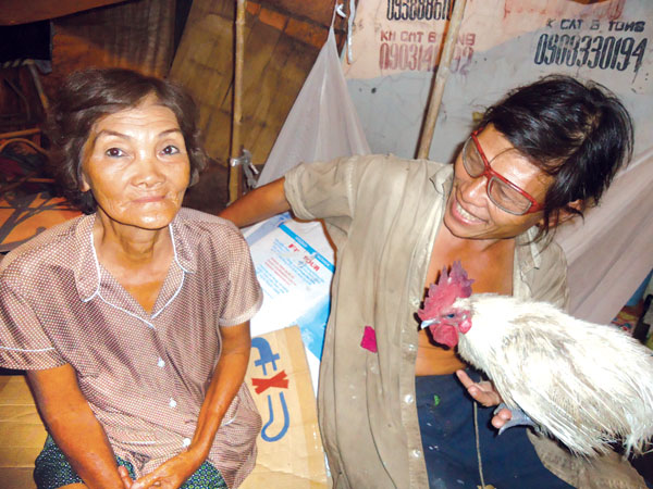 Tên là Nguyễn Văn Phong nhưng ông tự xưng “ông gà”. Đơn giản vì ông rất yêu gà, luôn chở theo gà trên xe đẩy khi đi lượm ve chai. Gà già chết, ông đem chôn và ngậm ngùi thương tiếc. Trong căn lều được che chắn bằng cành cây, tấm bạt, giấy kiếng... trên hè phố đường Nguyễn Hậu (P.Tân Thành, Q.Tân Phú, TP.HCM), ông cùng một phụ nữ sống cảnh nghèo đói nhưng vui vầy cùng lũ chó, mèo, gà.