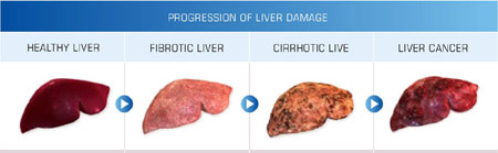 Con đường tới ung thư gan: Gan thường - gan bị xơ hóa - xơ gan - ung thư gan.