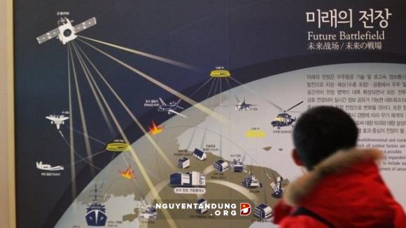 Biểu đồ mô tả chiến tranh mạng có thể xảy ra ở bán đảo Triều Tiên trong tương lai tại Bảo tàng Chiến tranh Triều Tiên ( Seoul, Hàn Quốc).
