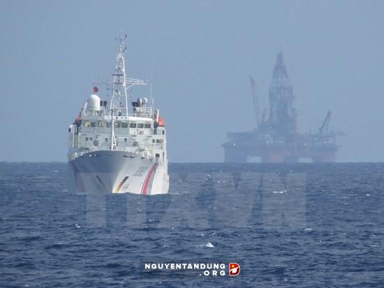 Tàu Trung Quốc bảo vệ giàn khoan Hải Dương-981 hạ đặt trái phép trong vùng đặc quyền kinh tế và thềm lục địa của Việt Nam.