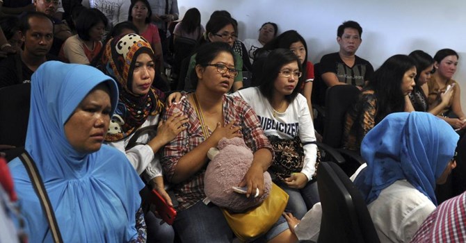 Các gia đình chờ đón thông tin về chuyến bay QZ8501 của AirAsia tại sân bay Surabaya - REUTERS /Antara /Suryanto
