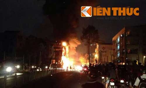 Sau tiếng nổ lớn, lửa nhanh chóng bốc cao và lan sang nhiều nhà, quán Karaoke trên đường Trần Quốc Thảo, TP HCM.