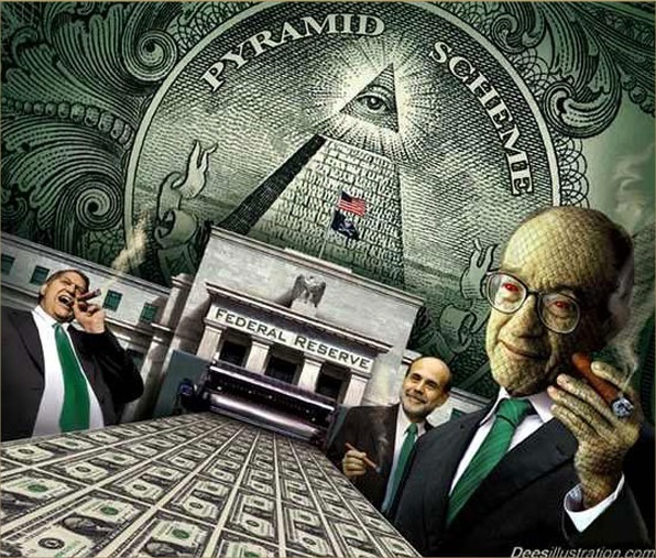 Cơ quan Dự trữ Liên bang FED, tức Ngân hàng Trung ương Mỹ, là một ngân hàng tư nhân! Chủ tịch FED đều là người Do Thái (gần đây là Greenspan, nay là Bernanke). FED chính là Tổng thống không nh́n thấy đang thống trị nước Mỹ, v́ FED có quyền in và phát hành đồng dollar Mỹ, c̣n gọi đồng tiền của FED (Federal Reserve Note) ;