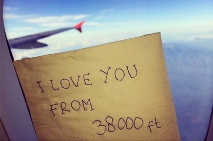 Tấm ảnh đầy xúc động cùng dòng chữ "Em yêu anh từ 11.582 mét" của nữ tiếp viên xinh đẹp
